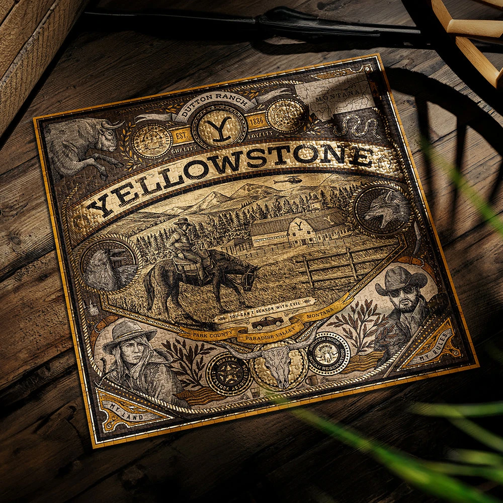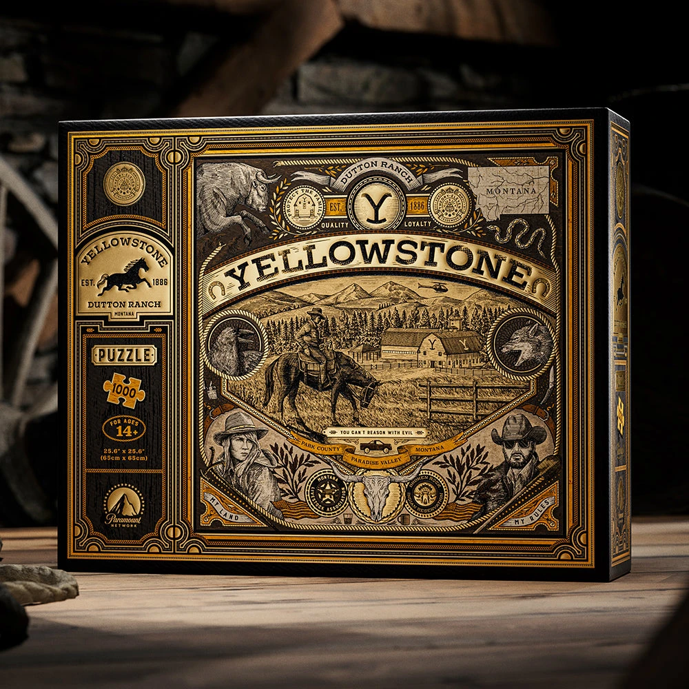 Explore the rugged frontier of Yellowstone like never before with a 1,000 piece jigsaw puzzle that brings the Dutton Ranch to life in intricate detail. Featuring gold foil details and tons of easter eggs from the series.