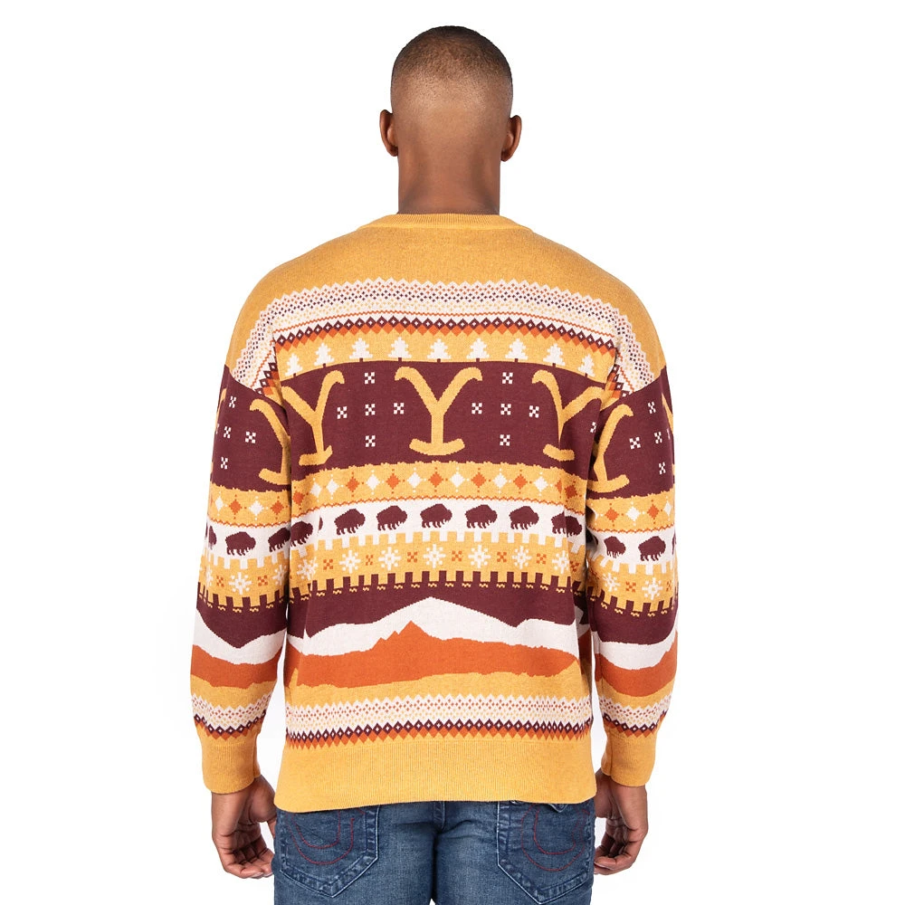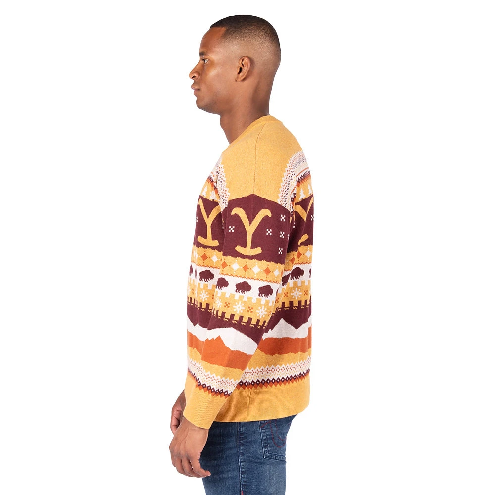 Celebrate the holiday season in true Dutton style with the Yellowstone 2024 Exclusive Holiday Sweater! Adorned with the iconic Y logo, a proud bison, and the scenic Montana plains surrounded by towering trees, this sweater captures the essence of the Dutton family’s connection to the land. Made from soft, warm fabric, it’s perfect for chilly nights spent by the fire or festive gatherings with loved ones. Show your appreciation for the rugged charm of Yellowstone and the Dutton legacy as you create new holiday memories in this stunning sweater!