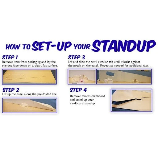 - Material: This cardboard cutout is printed on heavy cardboard with a built-in easel base. The item is free-standing and easy to assemble.