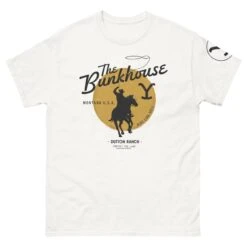 Capture the essence of the iconic Yellowstone Bunkhouse with our exclusive Adult T-Shirt. Crafted for comfort and adorned with rustic aesthetics inspired by the hit TV series, this shirt is more than apparel—it’s a wearable piece of the untamed frontier. Embrace the spirit of camaraderie and rugged beauty with every wear.