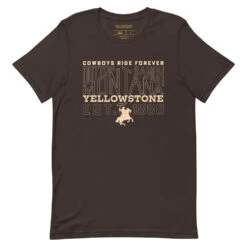 Honor the enduring spirit of the American cowboy with the Yellowstone Cowboys Ride Forever Unisex T-Shirt. This stylish tee features a bold design with the phrase “Cowboys Ride Forever,” capturing the essence of the rugged and resilient lifestyle portrayed in the Yellowstone series. Made from soft, premium cotton, this unisex t-shirt offers a comfortable and flattering fit for both men and women. Whether you’re a die-hard fan of the show or simply admire the cowboy ethos, this t-shirt is a perfect addition to your casual wardrobe. Show your love for Yellowstone and the timeless spirit of the cowboy with this iconic and versatile tee!