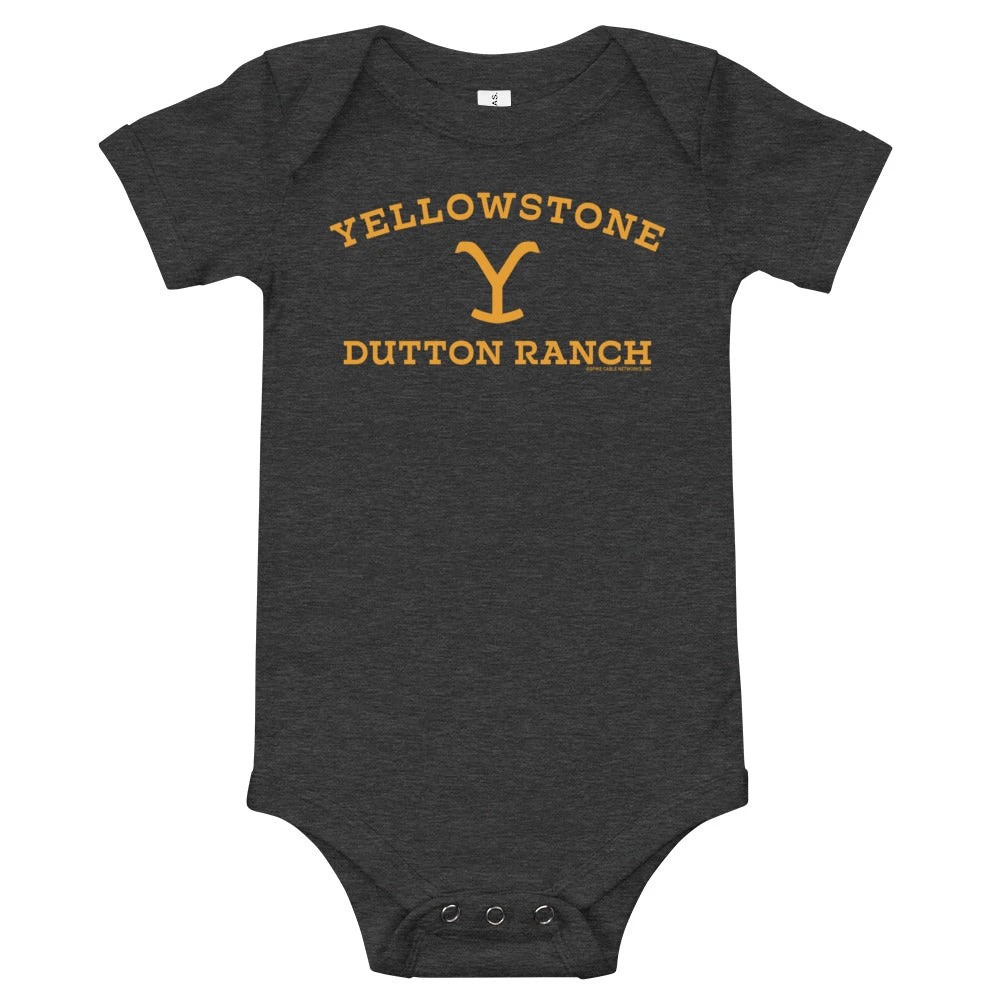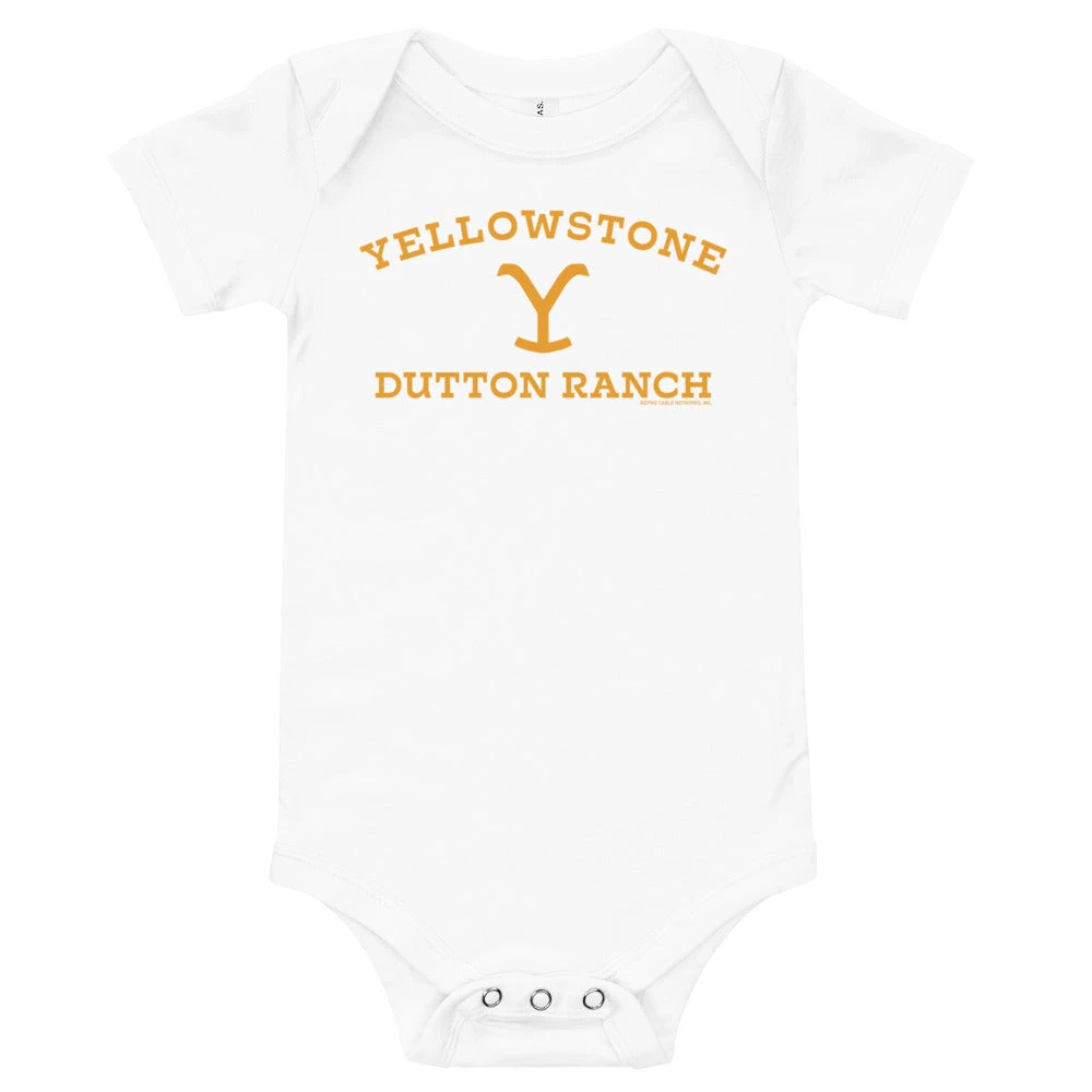Your little ranch hand will look absolutely adorable in this Yellowstone Dutton Ranch Baby Bodysuit. With the Yellowstone Dutton design on the front and a comfortable fit, this Yellowstone bodysuit lets your baby arrive anywhere in style.