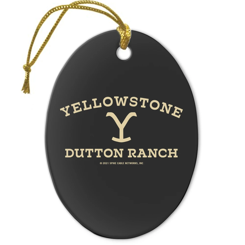 Get your tree holiday ready by hanging this classic Yellowstone Dutton Ranch Logo Double Sided Oval Ceramic Ornament for everyone to see. Featuring the eye-catching Yellowstone Dutton Ranch logo, this ornament is sure to fill all fans of Yellowstone with holiday cheer.
