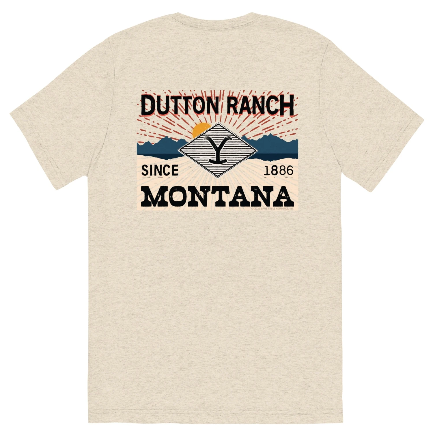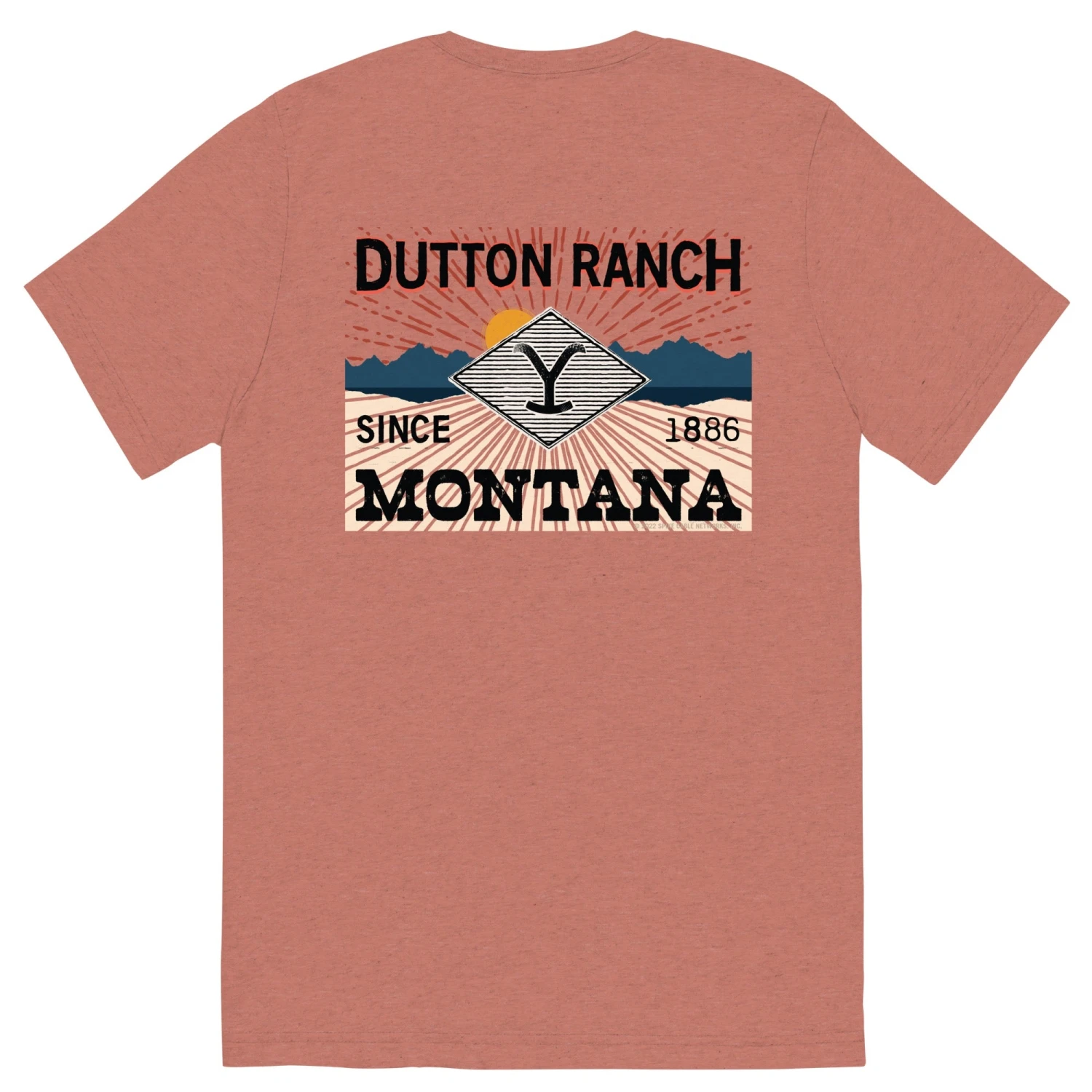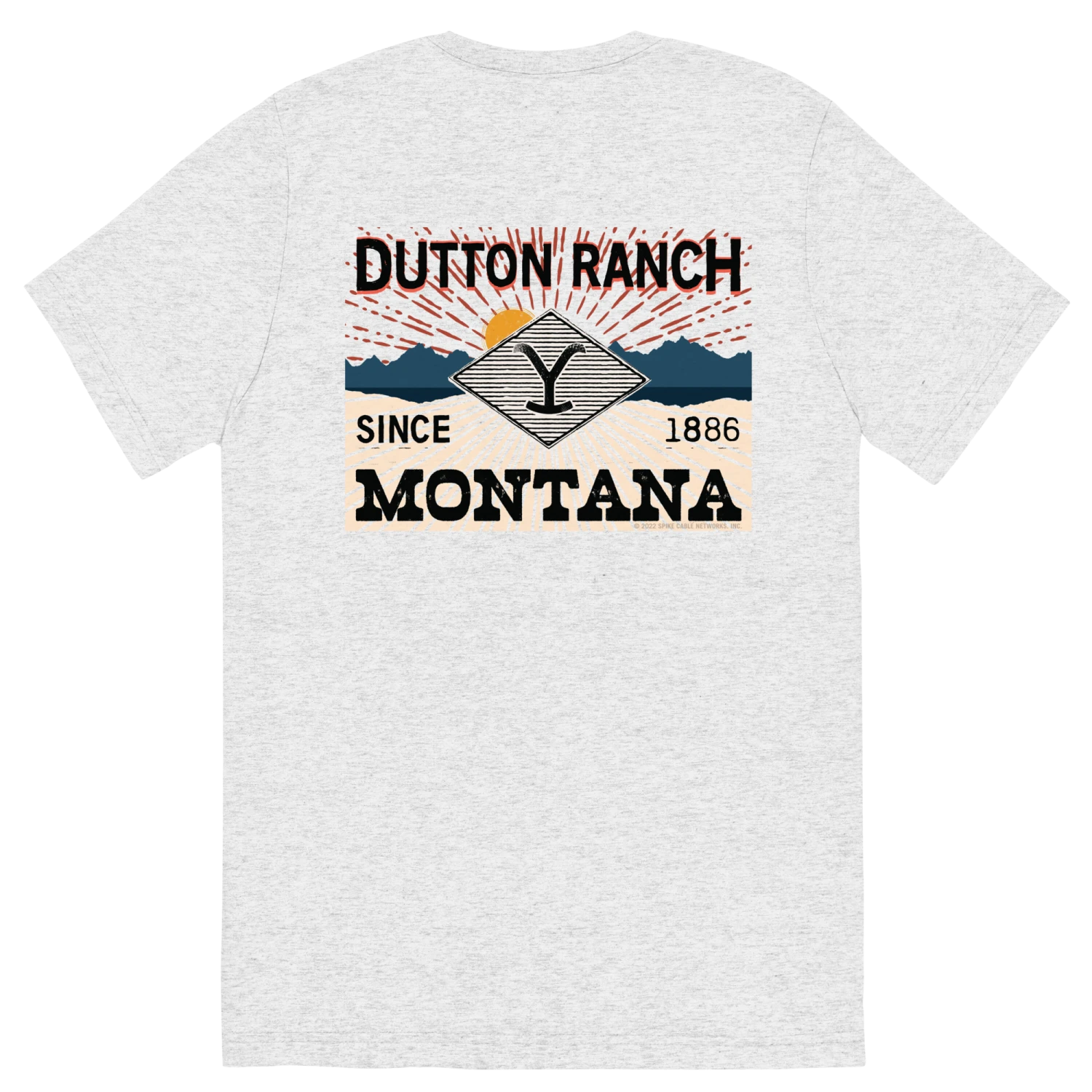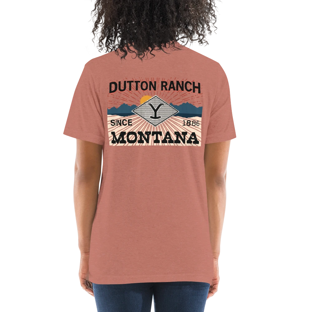 Ready to rock some ranch style? Check out our Yellowstone Dutton Ranch Montana Tri-Blend T-Shirt! It’s soft, comfy, and totally rad. Picture yourself wearing this tee, repping the Dutton Ranch logo and the beauty of Montana. Whether you’re hitting the trails or kicking back at home, this shirt is the perfect way to show your love for Yellowstone. This classic t-shirt will quickly become a comfortable addition for your every day action!