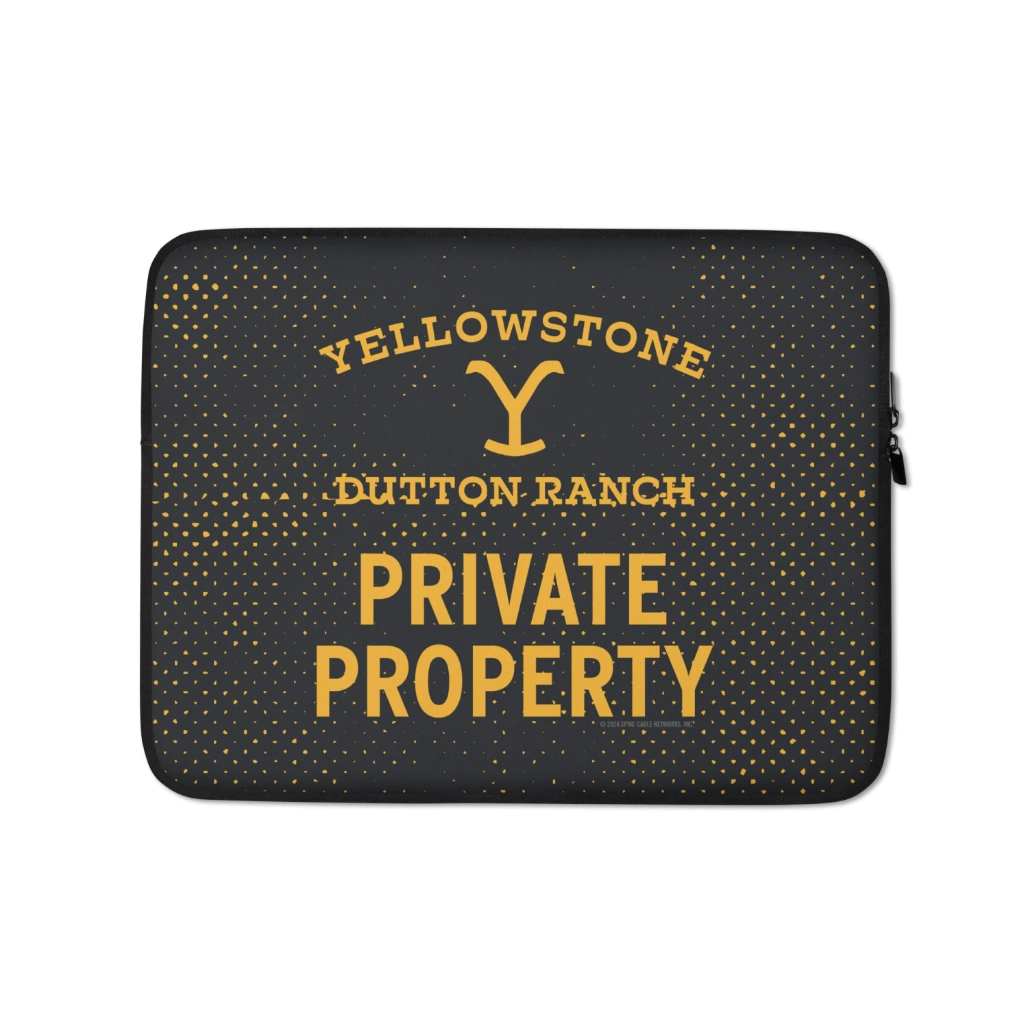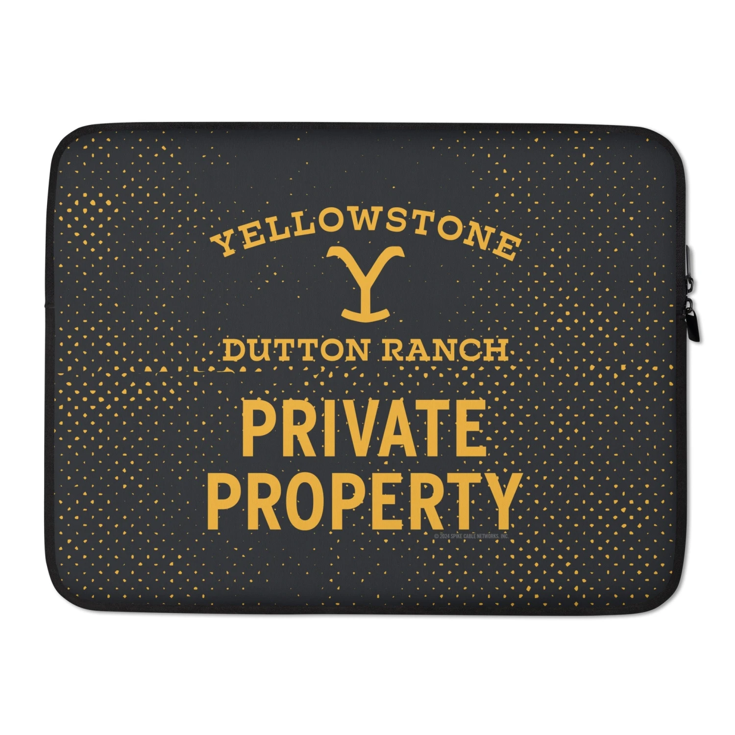 Protect your laptop in rugged style with our Yellowstone Dutton Ranch Private Property Laptop Sleeve. Featuring a bold “Private Property” sign against a backdrop of Montana’s Yellowstone Dutton Ranch, this sleeve is a tribute to the iconic setting of the hit TV series.