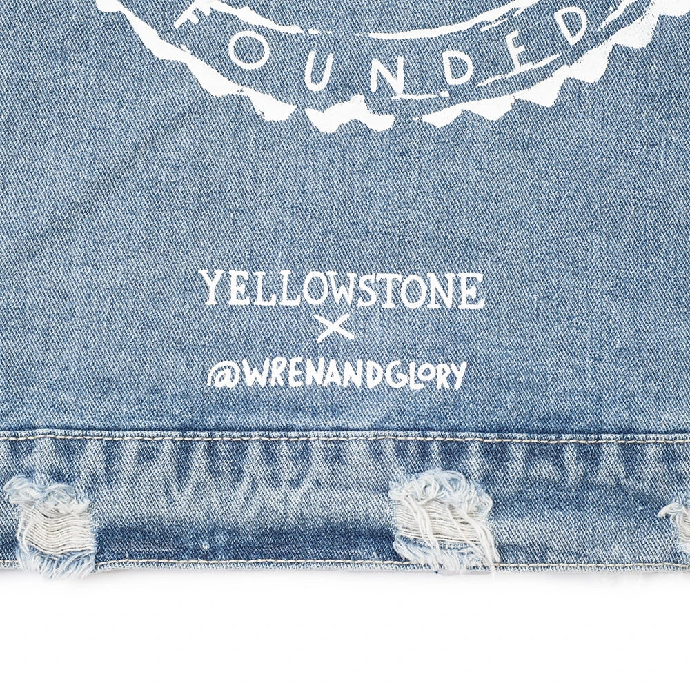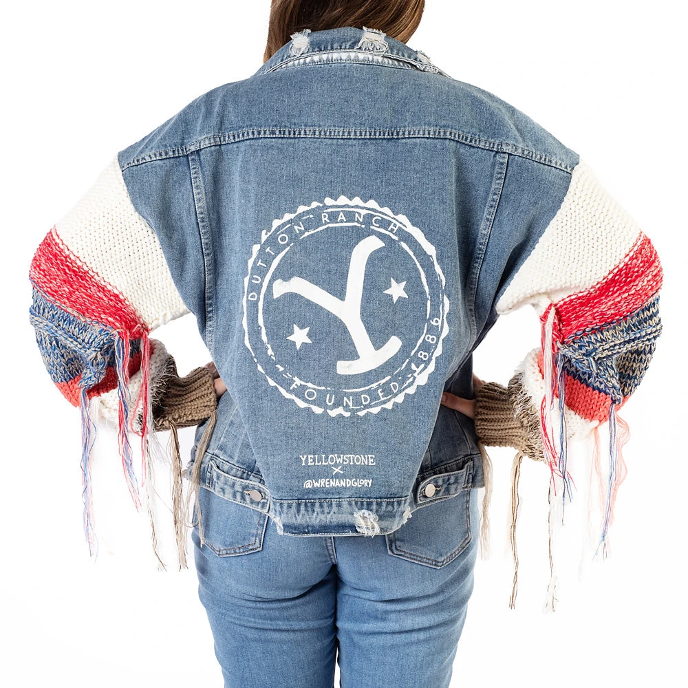 Whether you’re a die-hard Yellowstone fan or someone who appreciates unique and stylish apparel, the Yellowstone Dutton Ranch Sweater Sleeve Wren + Glory Hand Painted Denim Jacket is a must-have addition to your wardrobe. Embrace your love for Dutton Ranch and the series with this limited edition, hand-painted masterpiece!