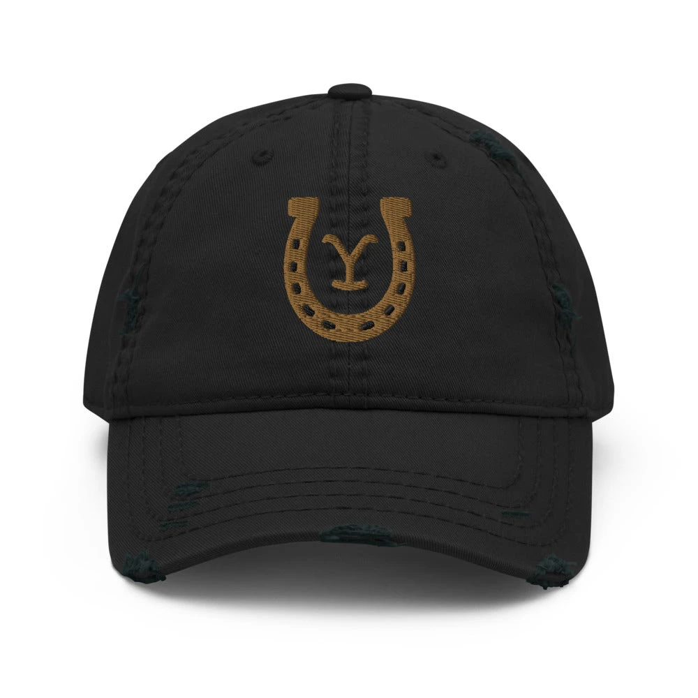Add a rugged edge to your wardrobe with the Yellowstone Embroidered Horse Shoe Distressed Dad Hat. Featuring a detailed embroidered horse shoe, this hat embodies the tough, untamed spirit of the Dutton Ranch. The classic dad hat design, complete with distressed details, gives it a well-worn, vintage look that’s perfect for any Yellowstone fan. The adjustable strap ensures a comfortable fit, while the durable construction makes it ideal for everyday wear. Whether you’re out on the ranch or simply want to showcase your Yellowstone pride, this distressed dad hat is the perfect blend of style and function.