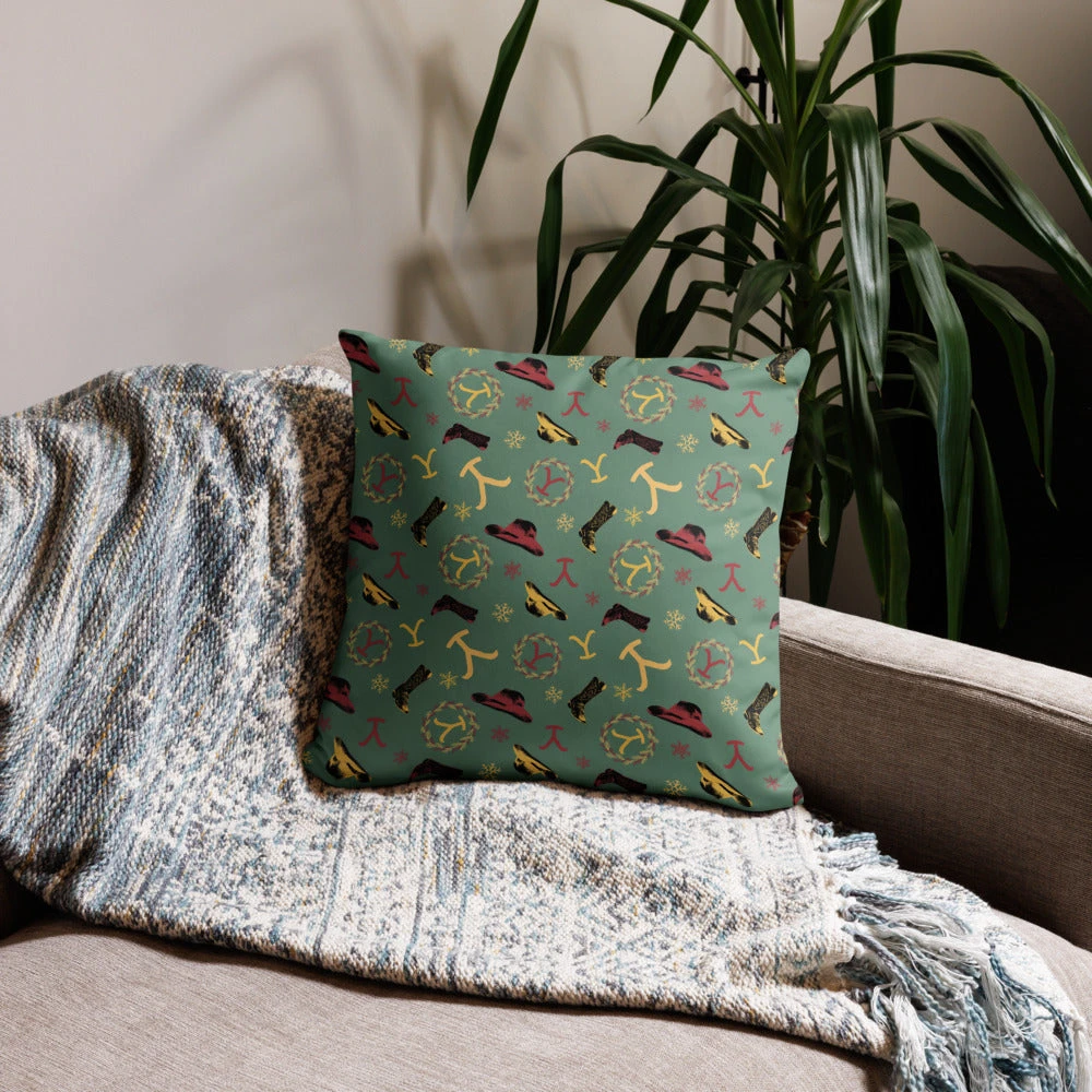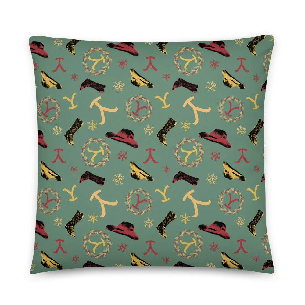 Celebrate the holidays with a rustic Western twist with this Yellowstone-inspired throw pillow, perfect for fans of the hit series. Featuring festive accents and iconic Yellowstone branding, this decorative pillow brings ranch-ready charm to your living room, bedroom, or cabin retreat.