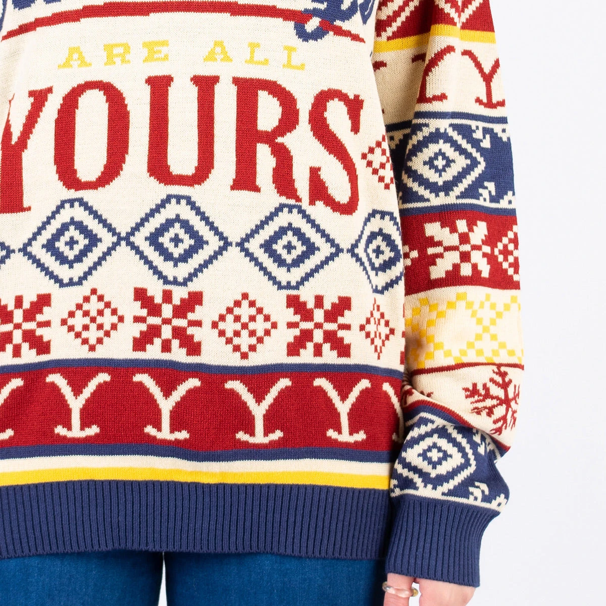 Stay cozy and show your love for Rip as you catch up on Yellowstone in this Yellowstone “My Holidays Are All Yours” Knitted Holiday Sweater. With a comfortable interior and holiday design that any fan will love, this Yellowstone Knitted Holiday Sweater is a great addition to your holiday wardrobe.