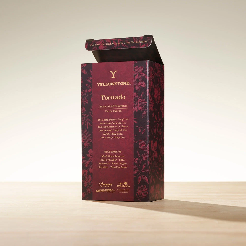 You are the trailer park. I am the tornado.” Our Beth Dutton-inspired eau de parfum delivers the complexity of a fierce yet sensual lady of the ranch. Stay sexy. Stay dirty. Stay you. Key Notes: • Wind Bloom Jasmine • Blue Cyclamen • Rare Amberwood • Burnt Sugar Crystals • Vanilla Cedar