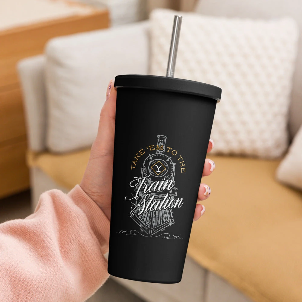 Take a piece of the Dutton legacy with you wherever you go with the Yellowstone Train Station Tumbler. Crafted from durable stainless steel, this tumbler features the iconic “Train Station” design and offers double-wall vacuum insulation to keep your drinks hot or cold for hours. With a spill-resistant lid and rugged construction, it’s perfect for fans of Yellowstone who appreciate quality and style. Whether you’re on the road or at home, this tumbler ensures you stay refreshed with a touch of Yellowstone grit.