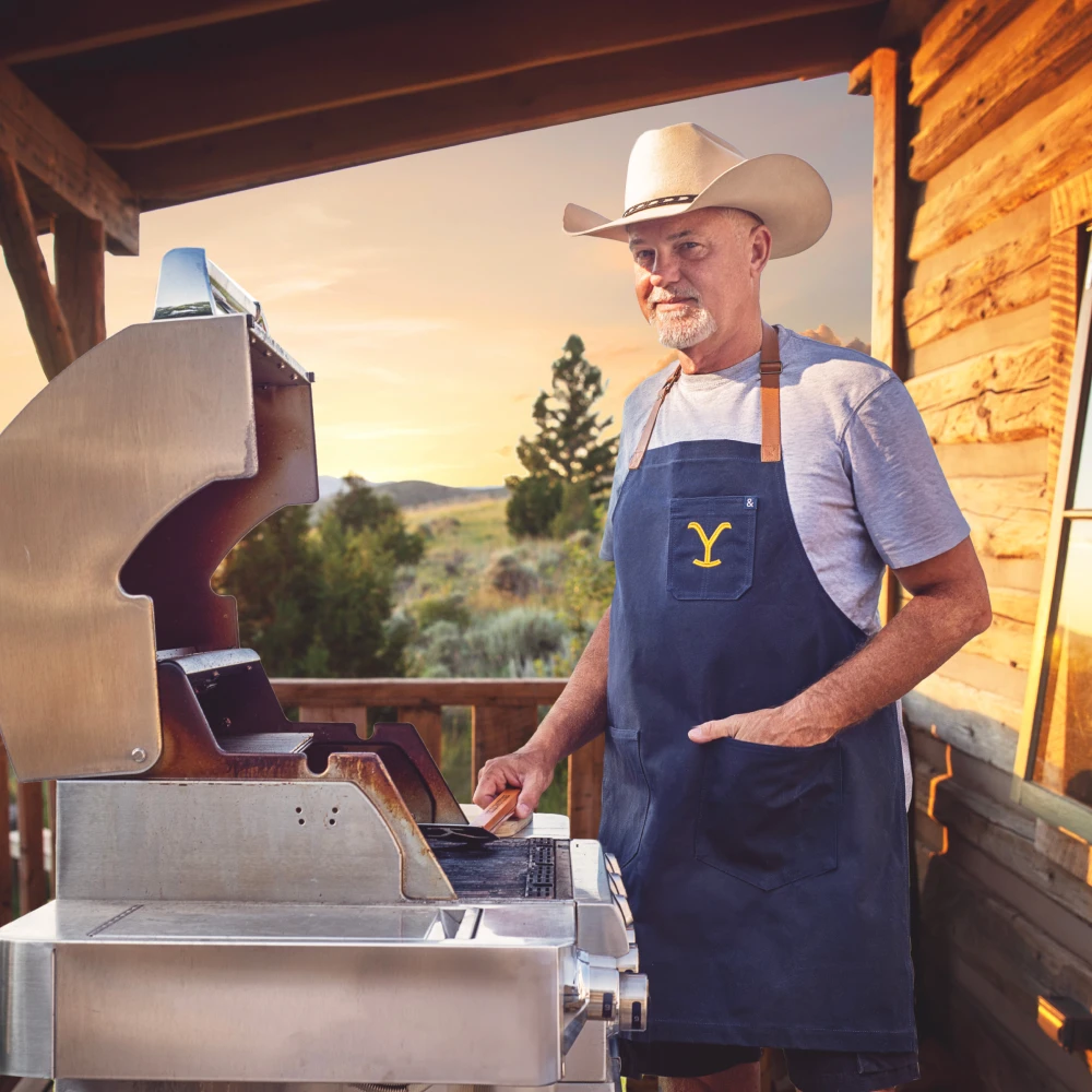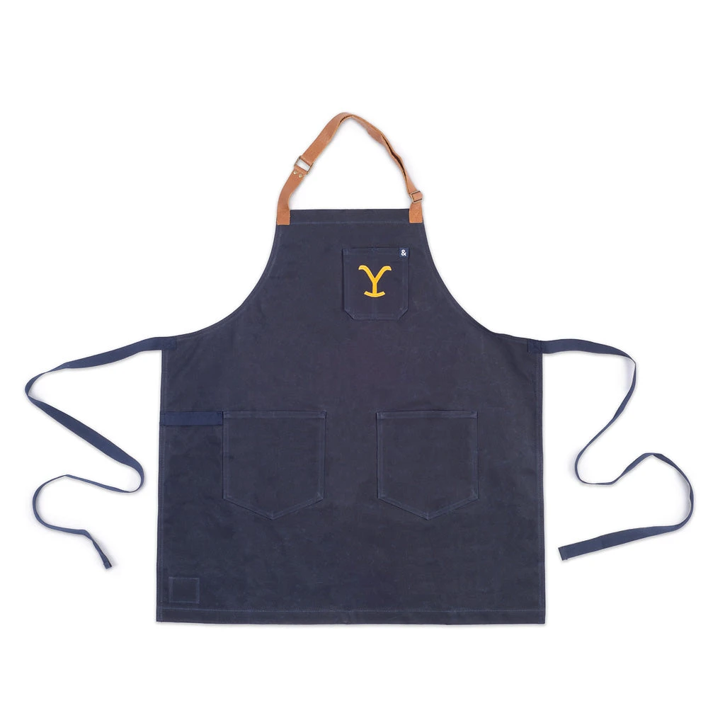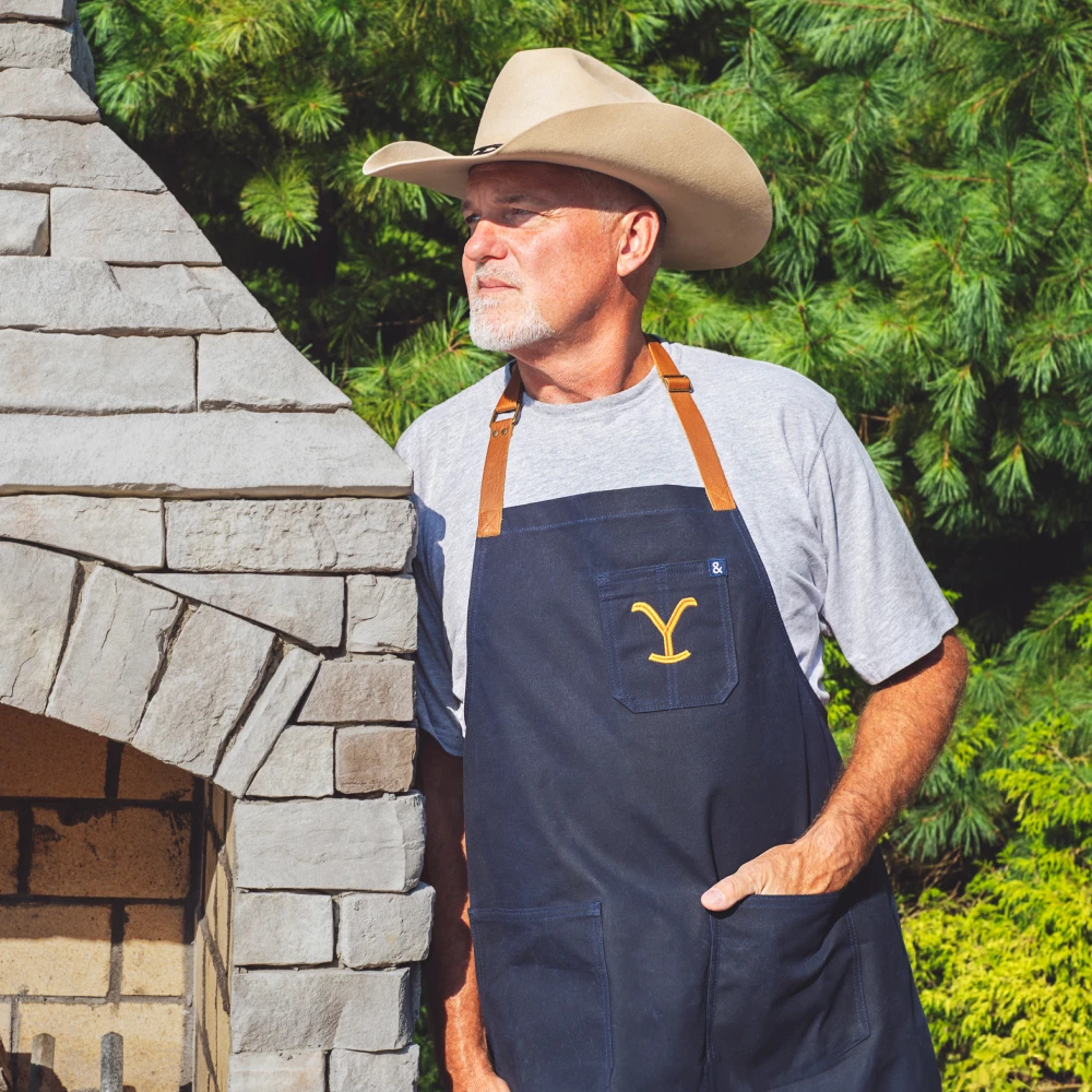 Introducing the Yellowstone x Hedley & Bennett Waxman Apron, a rugged essential for any fan of the Dutton Ranch. Crafted from super substantial waxed canvas, this apron is built to handle the toughest culinary challenges—whether you’re lathering up a rack of ribs for a barbecue worthy of the Yellowstone crew or chopping wood for your backyard pizza oven. Designed with an adjustable leather strap and a navy blue waist tie with a utility loop, this apron combines the timeless Western style of Yellowstone with the quality craftsmanship of Hedley & Bennett. Perfect for bringing a touch of Dutton grit and grandeur to your kitchen or outdoor cooking space.